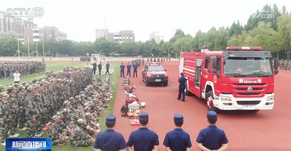 在山西省河津市第二中学,同学们的开学第一课是“移动消防课堂”。有奖问答、发放消防小配件等互动环节,以轻松有趣的方式传递安全知识。学生们还穿上了消防服,学习使用灭火器、铺设水带,进行实操体验。