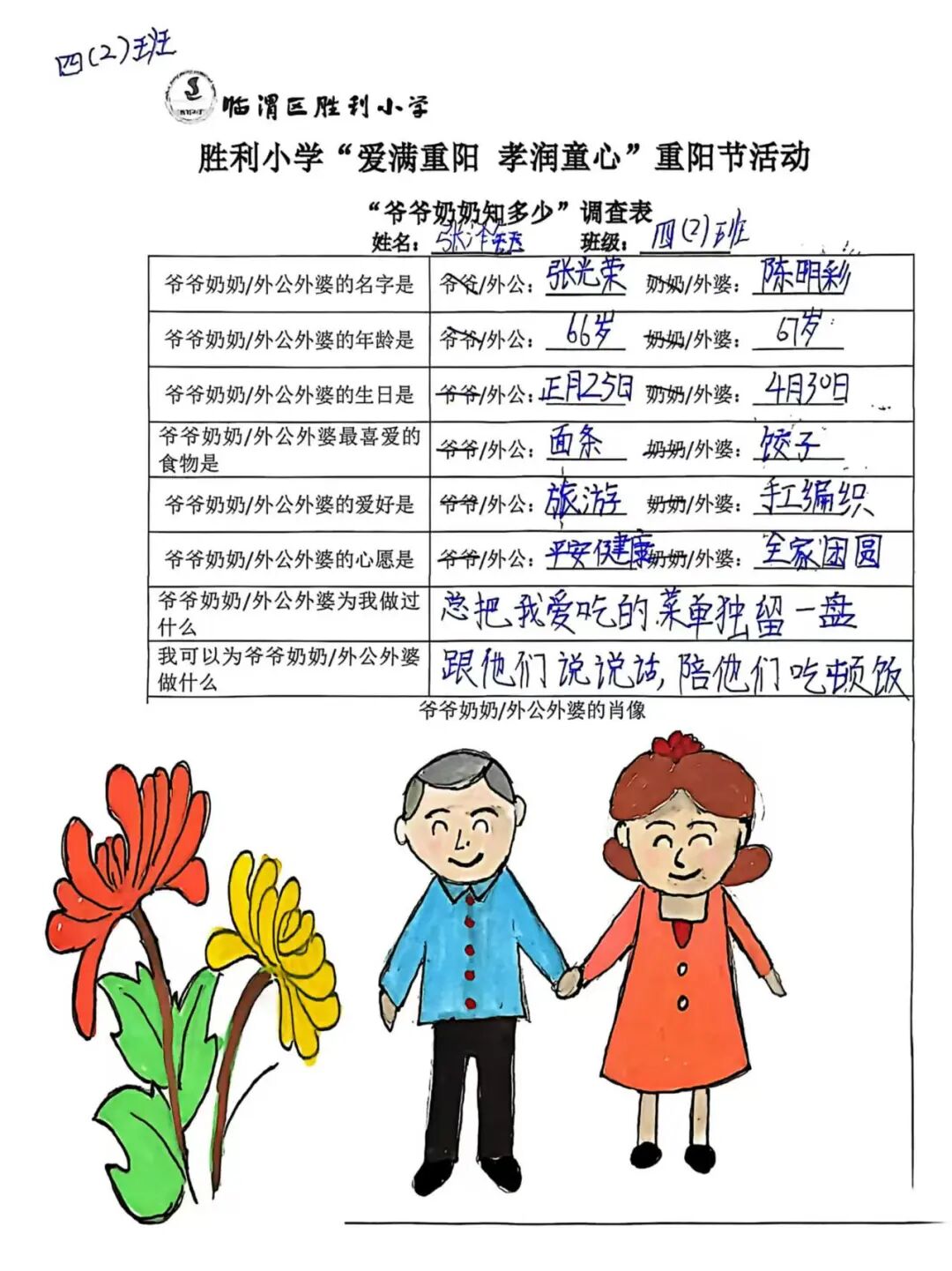 “金秋十月爽,九九话重阳。日月两重归,相映地久长。”在这个秋风送爽,果实飘香的十月,我们又迎来了重阳佳节。为弘扬中华民族孝亲敬老的传统美德,培养学生的感恩意识,胜利小学特开展了以“爱满重阳 孝润童心”为主题的实践活动。